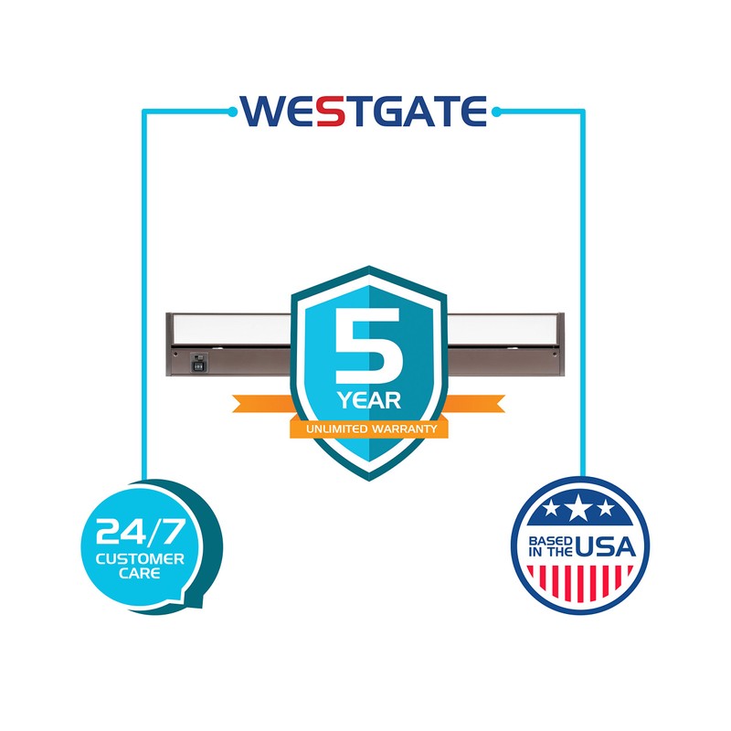• ✔ 5 YEAR UNLIMITED WARRANTY – Westgate’s 5-year unlimited warranty means we've got you covered with years of maintenance-free operation. Westgate LED Adjustable Undercabinet lights are UL Listed and have gone through strict testing to keep your safety 1st and to avoid electrical shock and fire hazard.