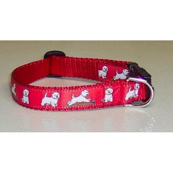 WESTIE COLLAR RED PLAYFUL FREE SHIP USA