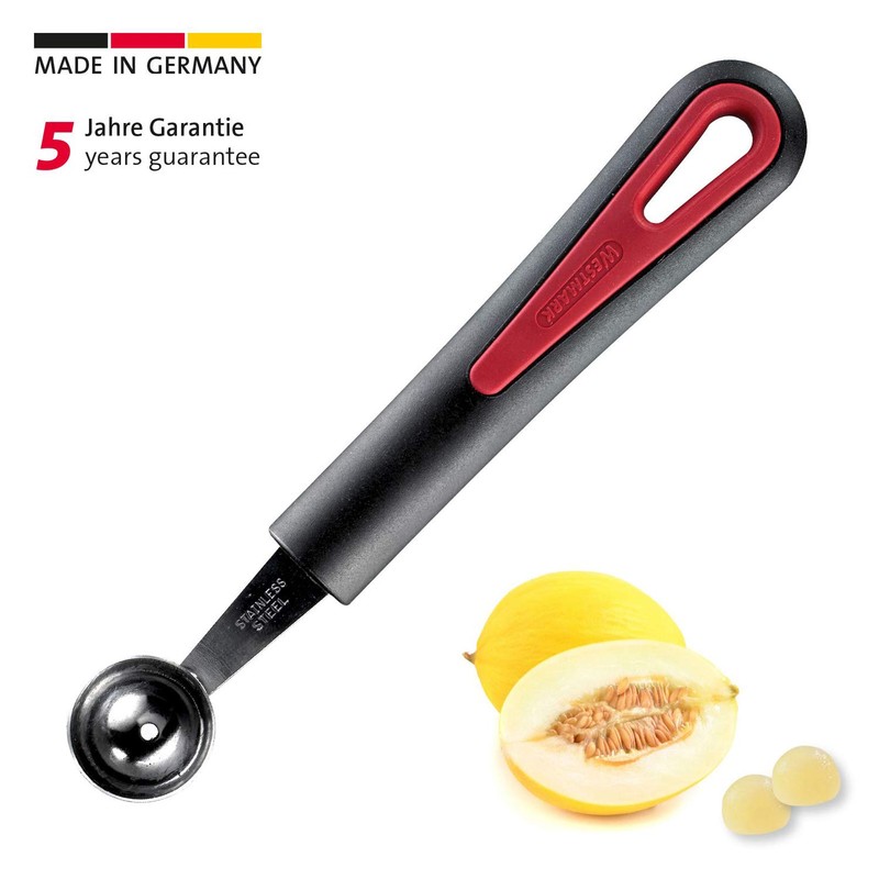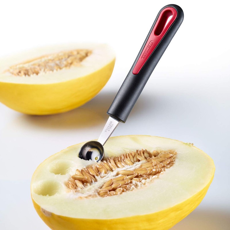• No residue hollowing out of fruit and vegetables thanks to sharp-edged spoon head made of stainless steel (diameter: 26 mm), easy cutting of balls from vegetables and fruit thanks to light pressure when scraping, neutral in taste and discolouration