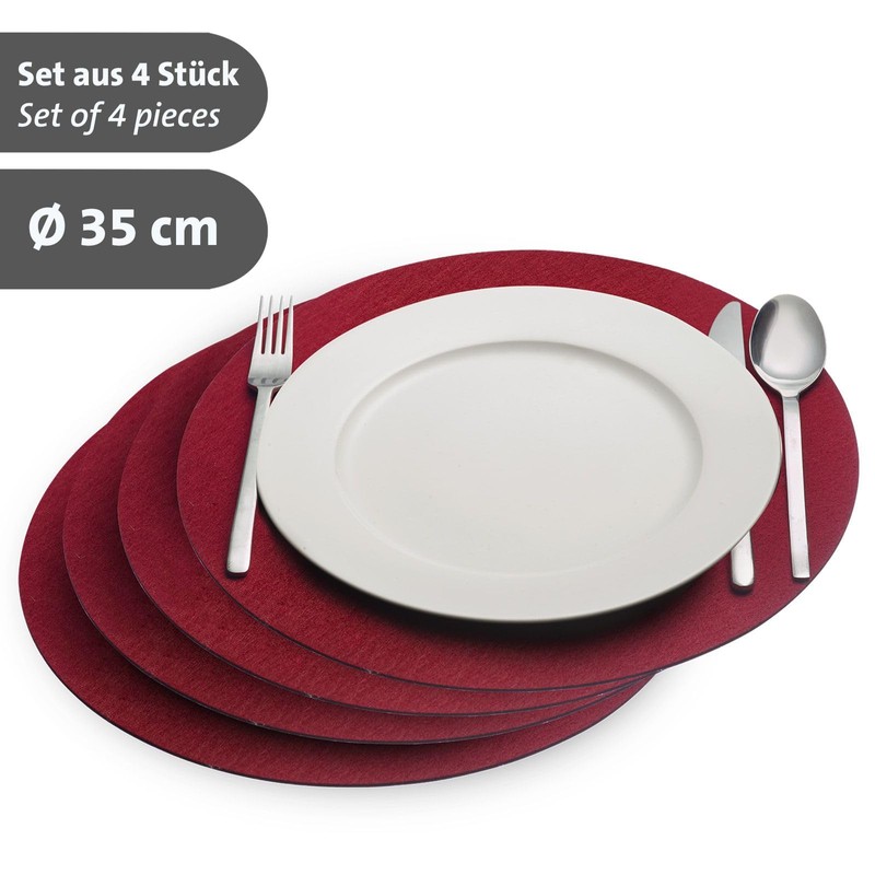 Westmark Cosy Placemats, Set of 4 Round Placemats, Elegant Place Mat as Table Mat, for Dining Table at Home or Catering, Polyester, Diameter 35 cm, Red