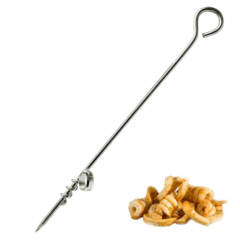 - For individual serving of food or curly fries, extra-long bar with bevelled handle for secure grip