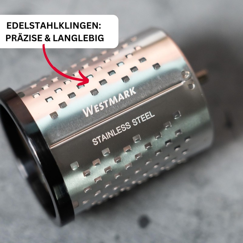 Salz und Pfeffer Westmark Mandelmühle 'Exklusive' Mandelmühle Features: -Hohe Standfestigkeit durch Saugfuß. -Mit extrem scharfen und langlebigen Schneidtrommeln. -Zum Feinreiben von Mandeln, Nüssen, Schokolade, Hartkäse, usw. geeignet. -Leichte Reinigung. Mandelmühle Produktdetails: -Material: 18/8 Edelstahl. -Material (Schneidtrommeln): Edelstahl rostfrei. -Durchmesser (Trommel): 4,5cm.