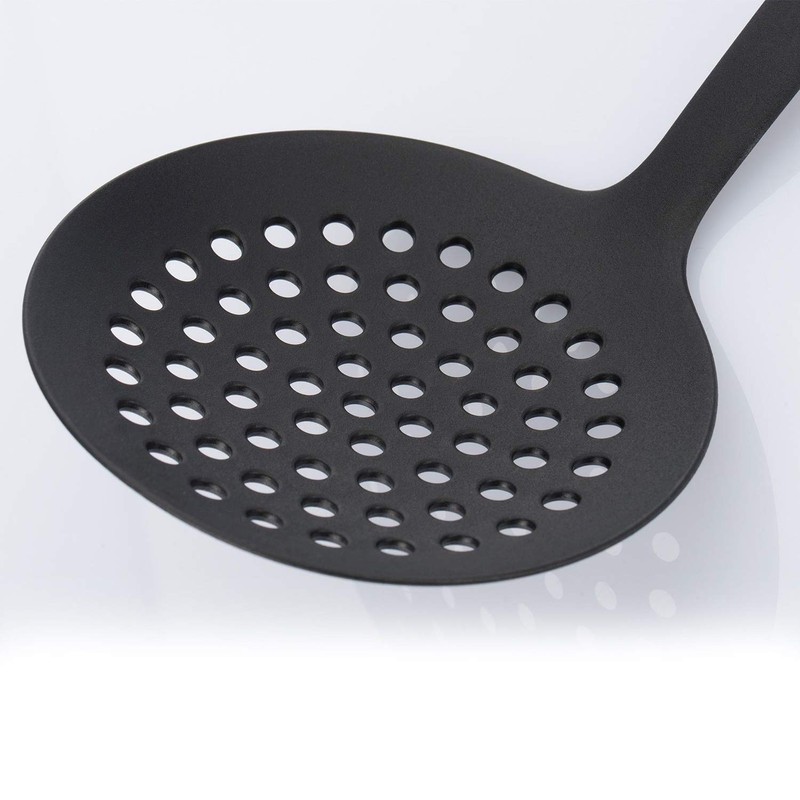 - Plastic skimmer with perforated head for skimming/dripping and removing from the pan and saucepan