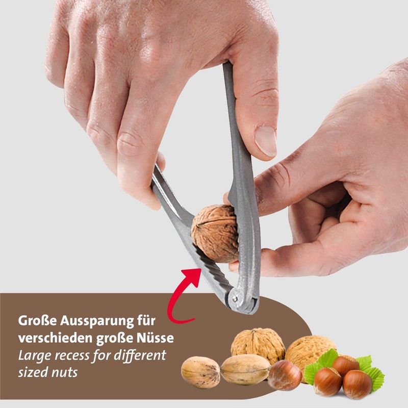 - Practical nutcracker tongs made of die-cast aluminium for easy breaking of nut shells, suitable for many types of nuts, e.g. hazel, para, walnuts and almonds