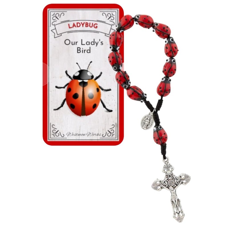 Westmon Works Ladybug Rosary Chaplet Ceramic Prayer with Metal Cross Hand-Painted Beads and Legend Card