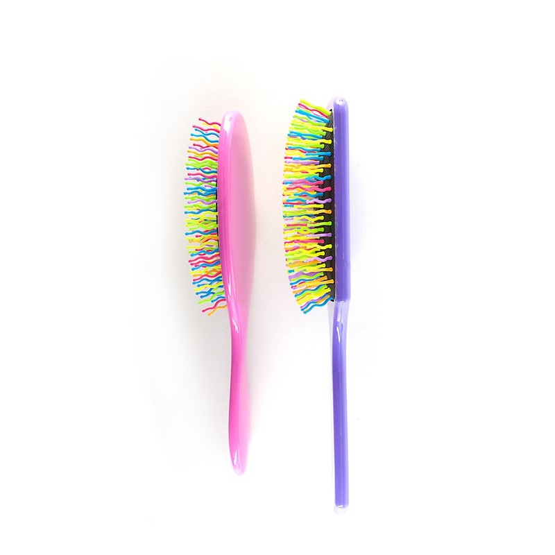 Curly wave bristle design is perfect for all hair types. Helps to create volume without damaging hair. Includes a paddle brush and an oval brush