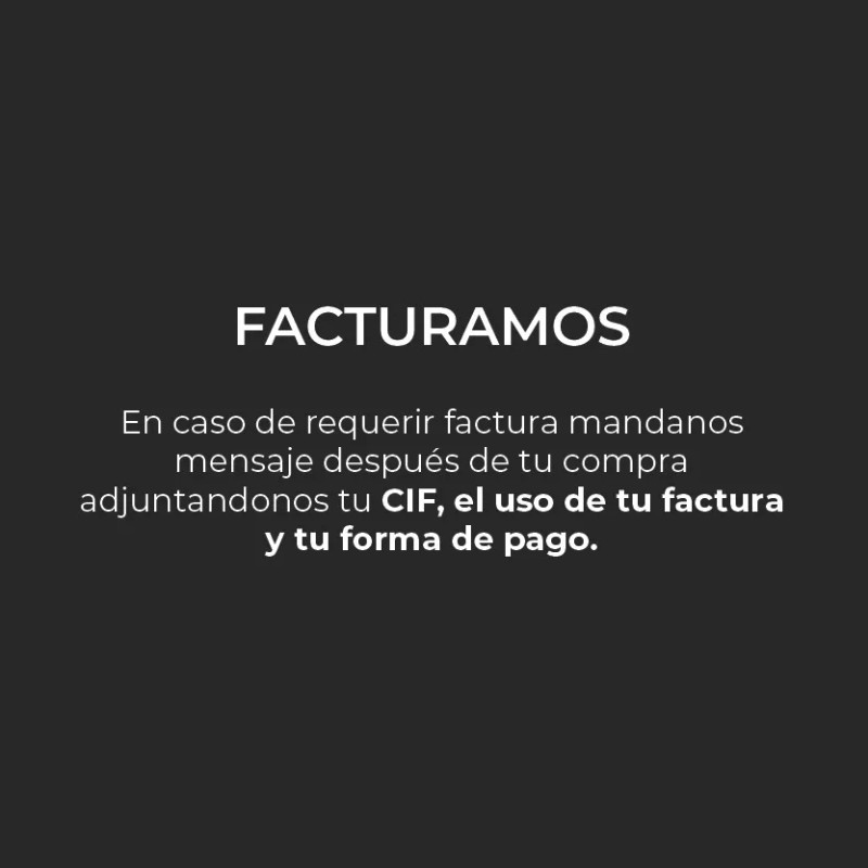 Si requieres factura favor de enviarnos un mensaje en tu compra adjuntando tu CIF y especificando tu método de pago y el uso de la factura.