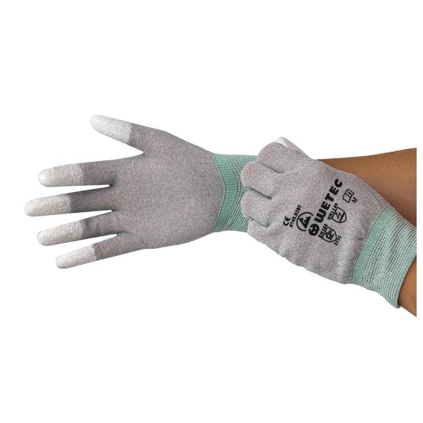 Wetec PU Coated Fingertips Gloves ESD, Large, Carbon String