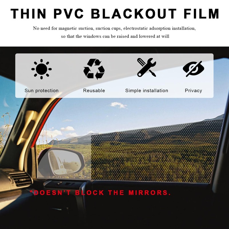 - Reliable Quality: Our static cling car window shades are made of high-quality PVC material, which has good flexibility and durability. Moreover, they are washable and can be reused after washing, drying, and smoothing and won't wrinkle when pasted again