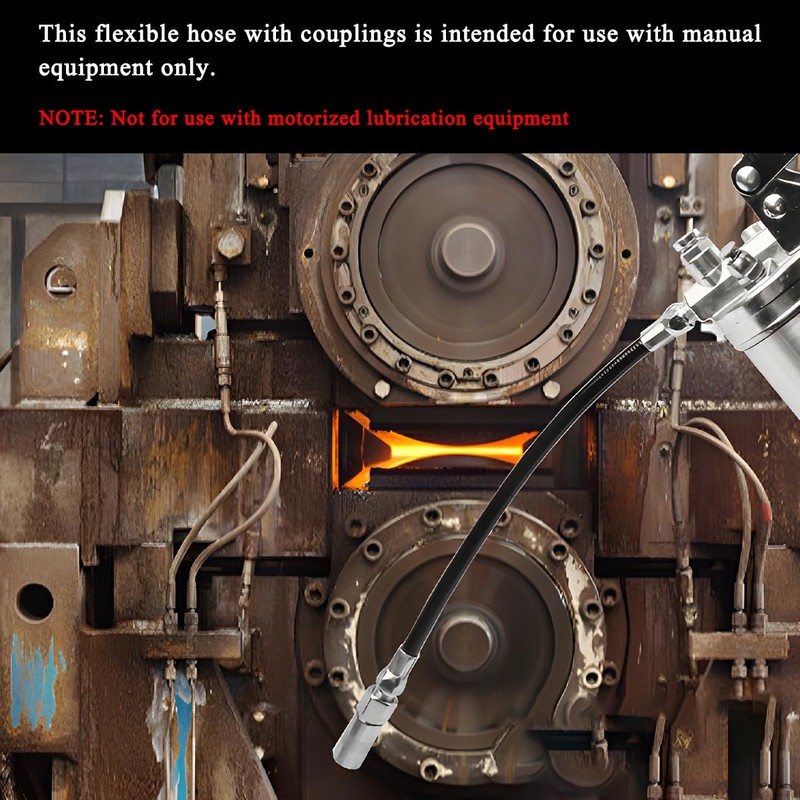 - 【Vast Application】: Our flexible grease gun hose is versatile and suitable for hand, electric and steam operated grease guns. It can be used for car repairs, large machinery on construction sites, axles and transmission systems. What's more, it can also be used for lubrication of farm tractors, plows, harrows, disc harrows, seeders and more.