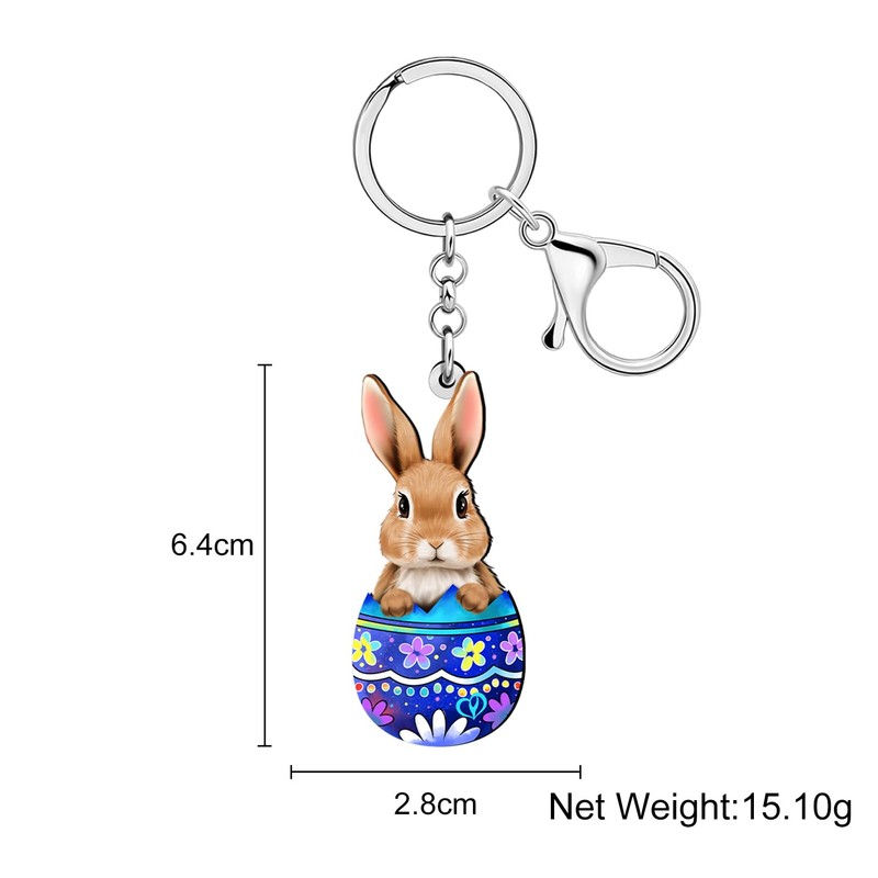 - Easter keychain weight :15.1g. Bunny charms size :64mm x28mm approximately2.52"tall &1.10" width.