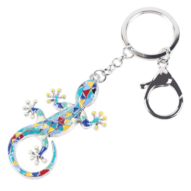 WEVENI - Llavero de aleación de esmalte Gecko Lizard, diseño de gatito, Azul, Mediano