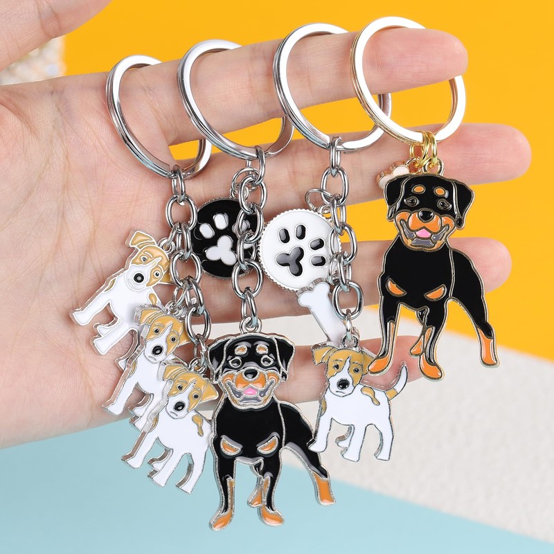 WEWAYSMILE Dog Keychain Car Keychain Lovely Dog Key-ring Portable Metal Keychain Gift for Pet Lover Birthday Puppy Theme, Rottweiler, About 11.8*8.8*1.8cm