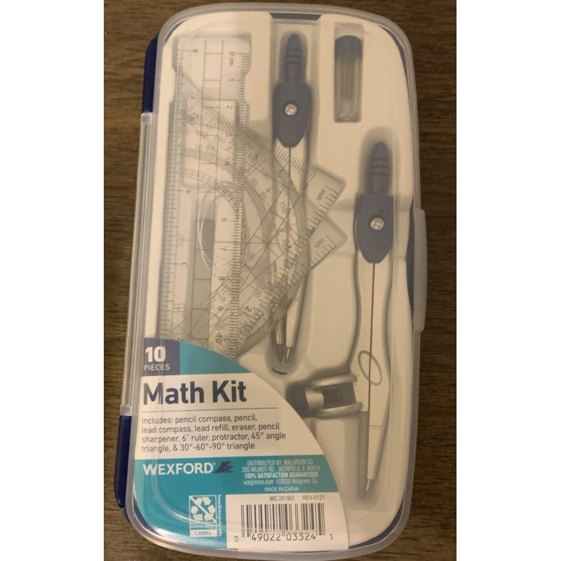 Wexford 10 Pcs Math Geometry Kit Set Compass Precision Tool Protractor Triangle Angle