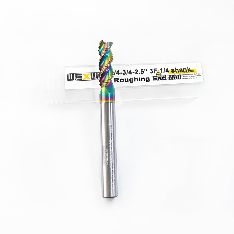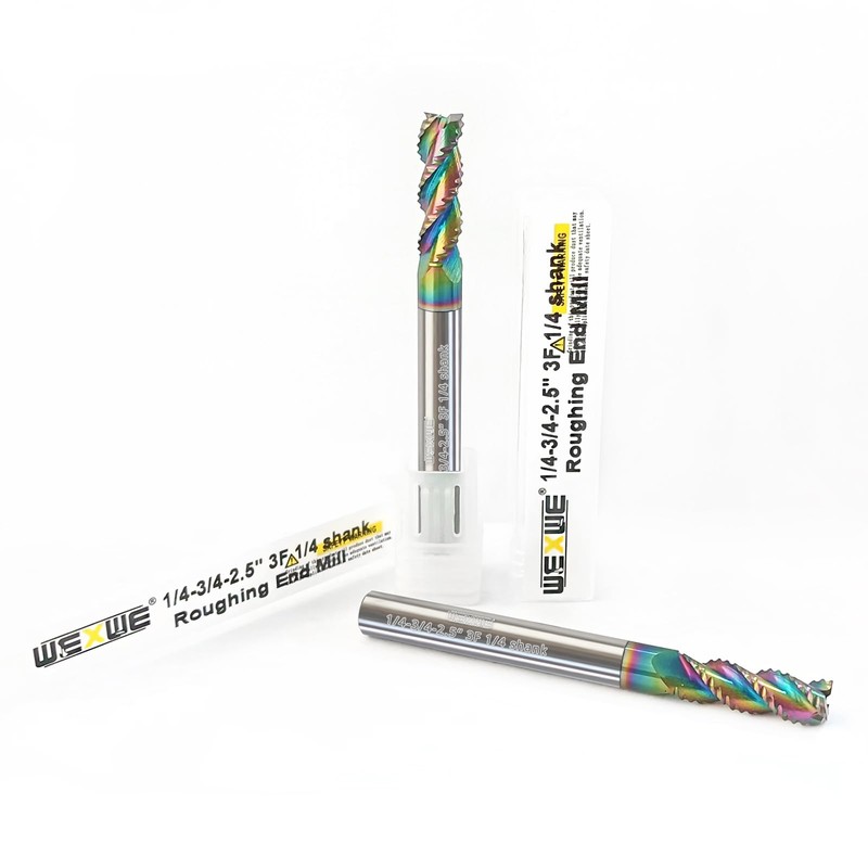 WEXWE Tools Roughing End Mill, DLC Diamond-Like Coating Wave Milling Cutter for Aluminum, Copper, Magnesium Alloys, Composite Materials, 3 Flute, 1/4" Shank(2 Piece, 1/4"-2.5" L