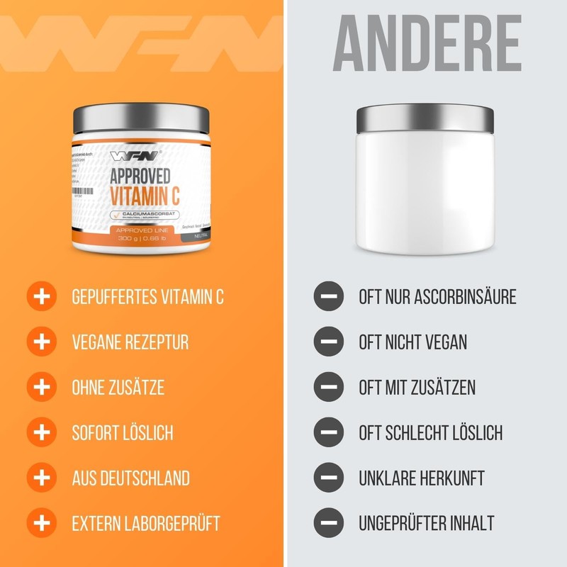 - Buffered vitamin C - The WFN approved vitamin C contains pure vitamin C as calcium ascorbate. Unlike conventional ascorbic acid, calcium ascorbate is pH neutral, acid-free and therefore very stomach-friendly.