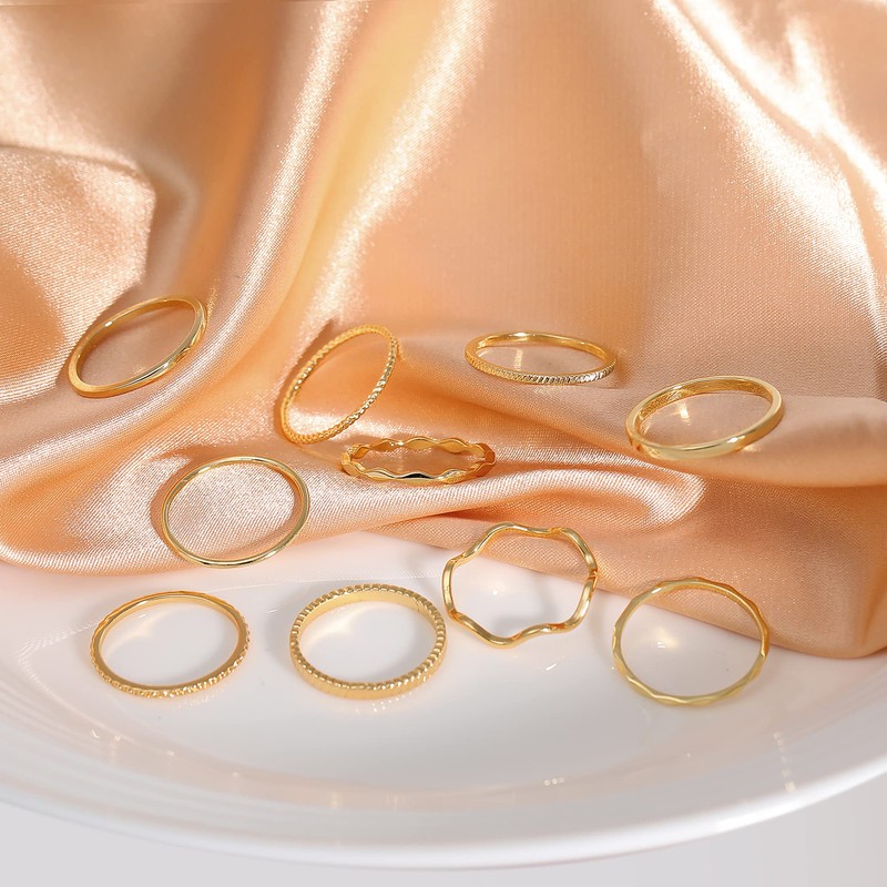 - ✧✦ WHAT YOU GET --One order comes 10pcs 18k gold plated Knuckle Midi rings, same size and multiple styles, width 1-2 mm. All-match classic style, essential stackable rings set, provide you versatility and replacement choice.