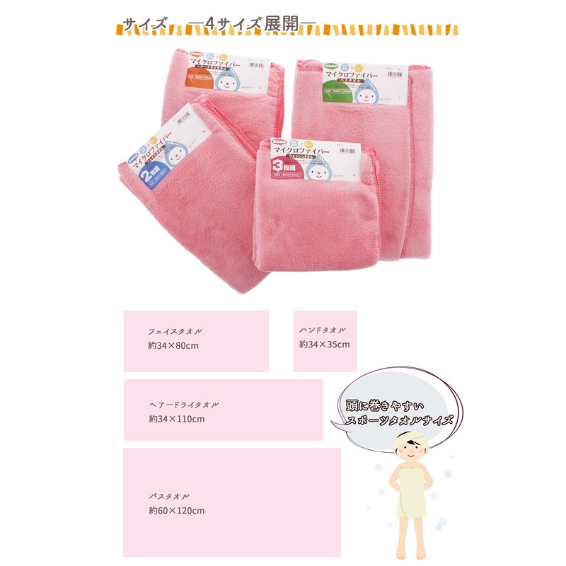WG448702 Hand Towels, Sunny Color, Wash, Set of 3, Microfiber, Pink, Approx. 13.4 x 13.8 inches (34 x 35 cm)