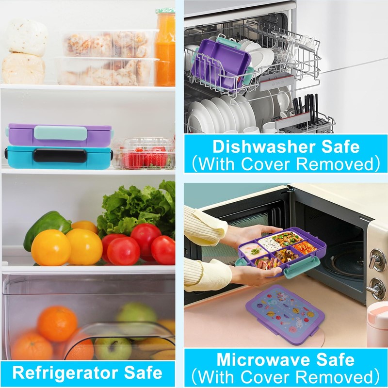 - MICROWAVE & DISHWASHER SAFE: Easily reheat foods right in the bento box compartments for convenience.
