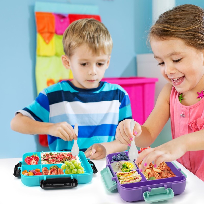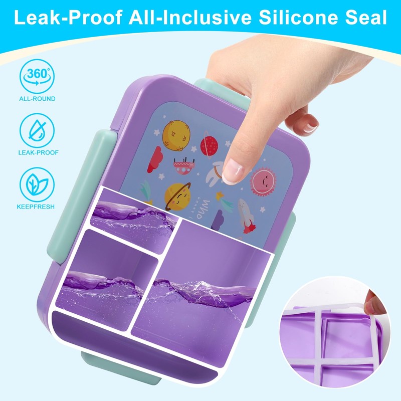 WGBP Bento Box for Kids,Ideal Leakproof Bento Lunch Box Containers with 5 Compartments and Utensils, Microwave & Dishwasher Safe (1200ml Purple)