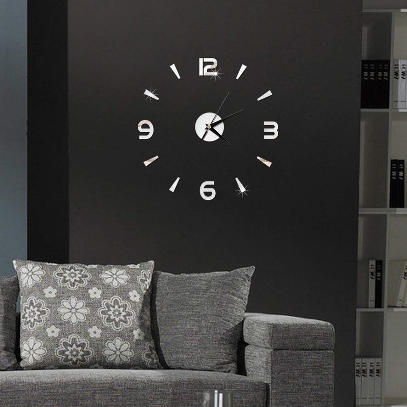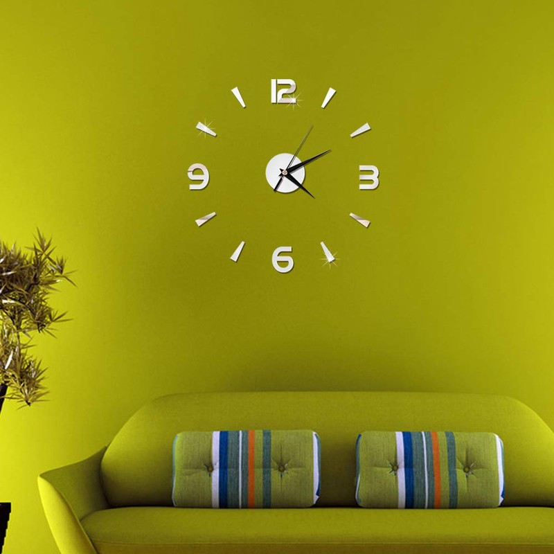 WGFOIP Stylish 3D Frameless DIY Wall Clocks with Acrylic Mirror Stickers Wall Decor for Modern Homes (Silver)