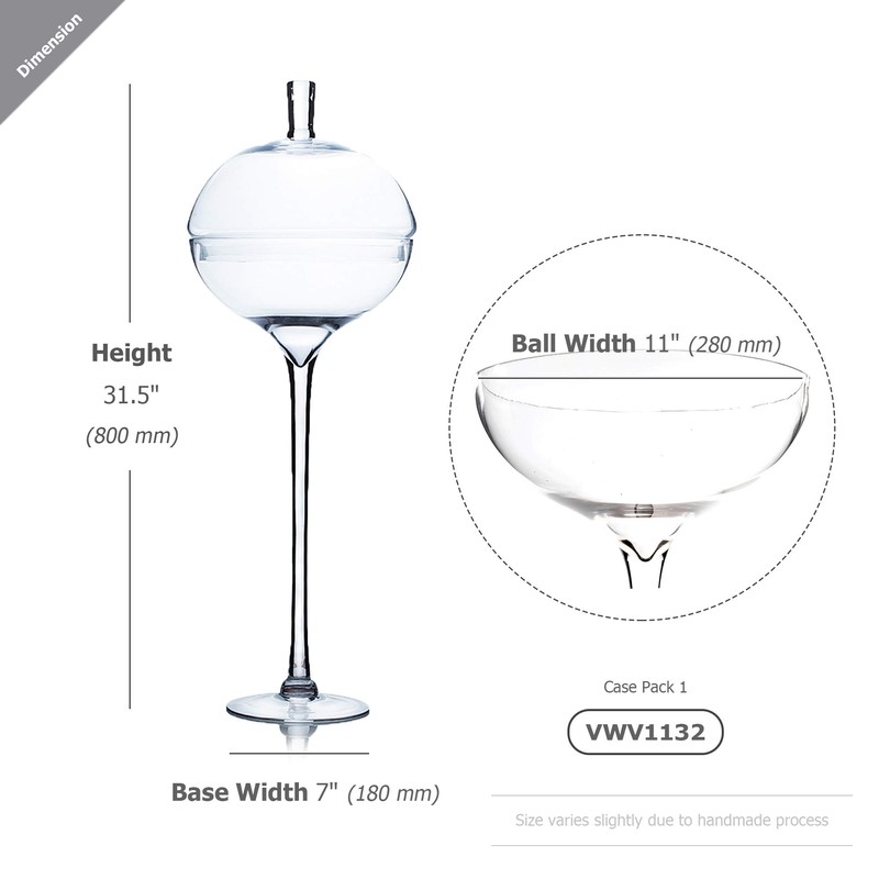 WGV lollipop Vase, Width 11", Height 31.5", Clear Ball on Stand Glass Planter Terrarium with Stem, Candy Fruit Jar Floral Container for Wedding Party Event Home Office Decor, 1 Piece