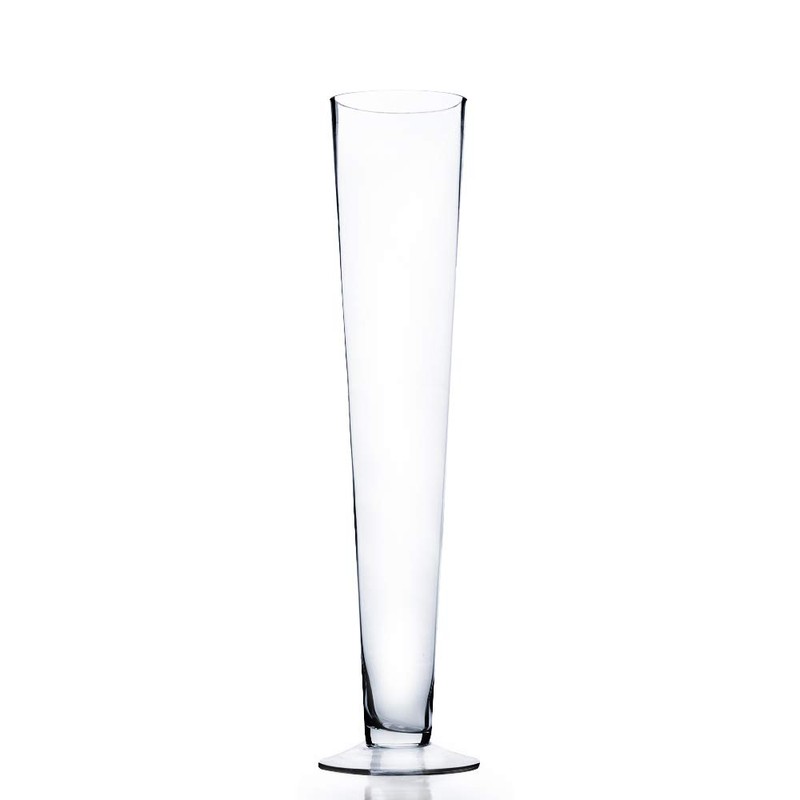 Clear Pilsner Trumpet Glass Vase / Center piece - Open: 4", Height: 19". All Glassware are originally hand made and cut in metric, we converted measurement to inches, so there may be slight discrepancy, if you need exact detailed measurement, please contact us for exact measurement.