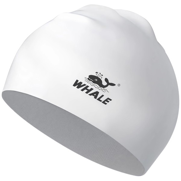 Whale Silicone Swim Cap - Waterproof, Non-Slip, High Elasticity - Keeps Hair Dry, Perfect for Men and Women,Large Swimming Cap (White)