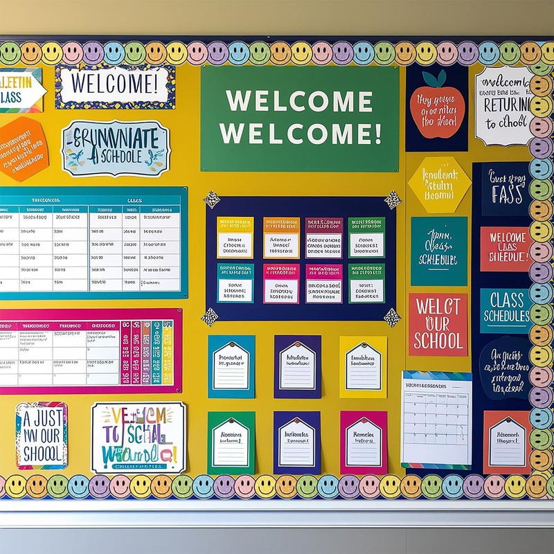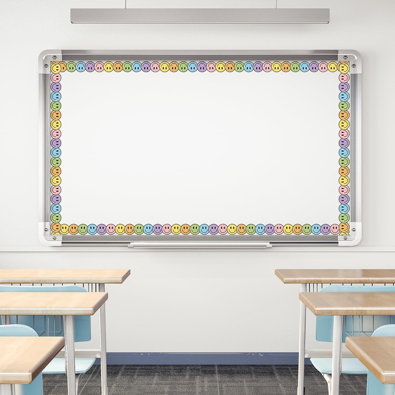 - Smile Face Design: This bulletin board border features shimmering glitter accents on pastel color smile faces, creating a positive and joyful boho vibe for any place