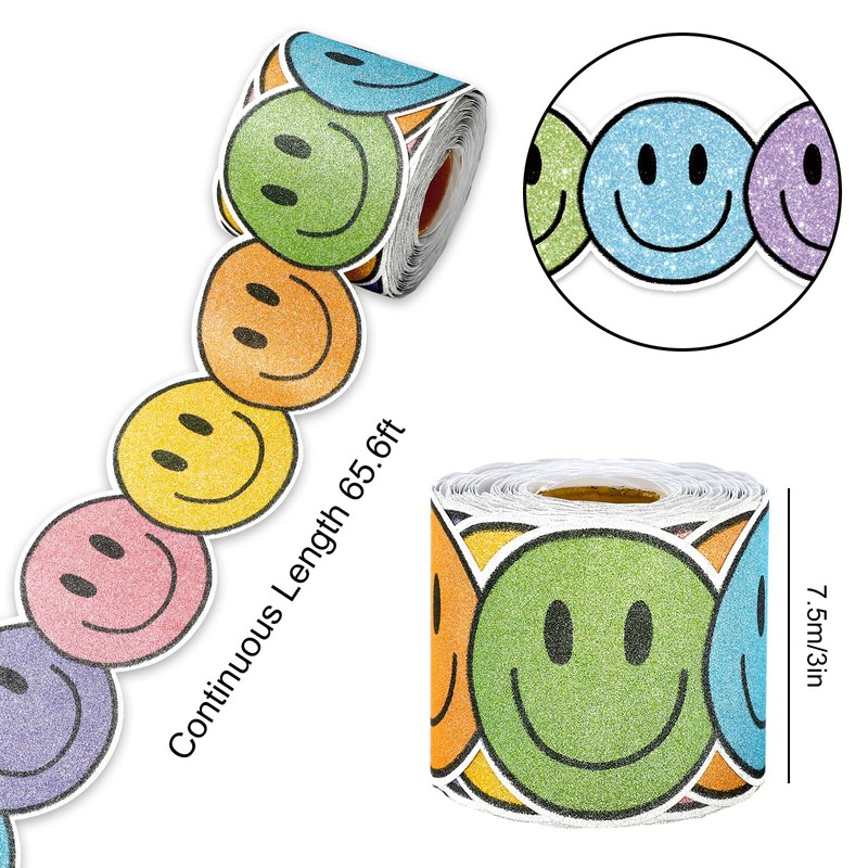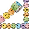 Whaline 65.6Ft Boho Happy Face Bulletin Board Border Glitter Pastel Smile Face Die Cut Trim Border Roll for Classroom Chalkboard Wall Decor