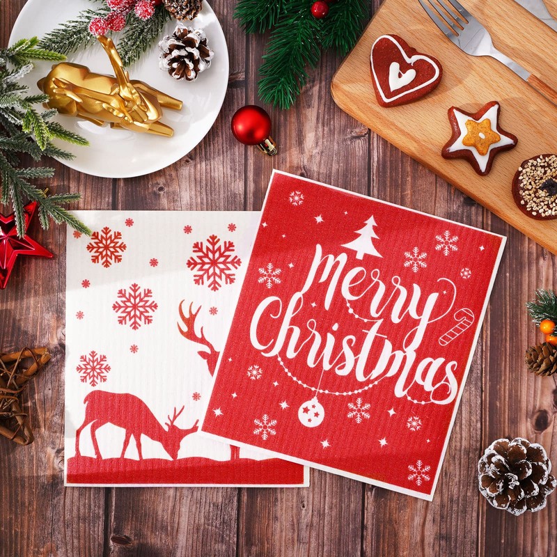 - Christmas Design - Our Swedish kitchen towels are mainly colored in white and red, printed with Christmas themed patterns, snowflake, reindeer, Santa, Christmas tree, letter Merry Christmas, Let It Snow, well add a strong holiday atmosphere.