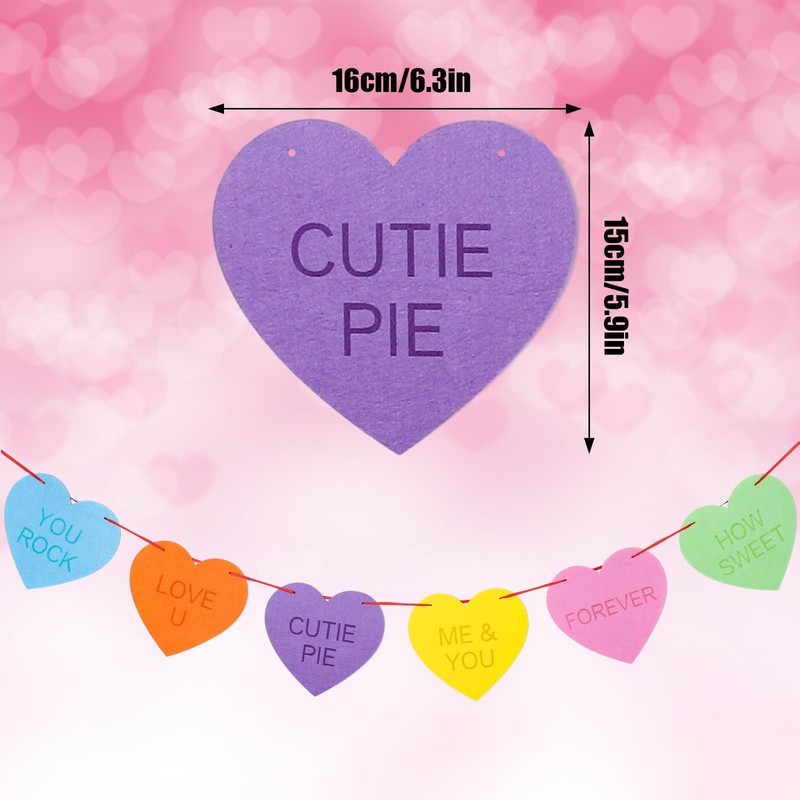 - Perfect valentine's day decoration: Each piece heart measures 6.3 x 5.9 inch and the rope is about 9.8 feet long, you can fix this banner wherever you like easily and adjust the gap between each heart freely
