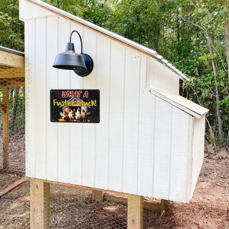 What a Fuster Cluck Tin Sign Funny Chicken Coop Signs Gift for Chicken Farm Owners Farmhouse Wall Art Decorations for Kitchen Living Room Hen House 8x12 Inch