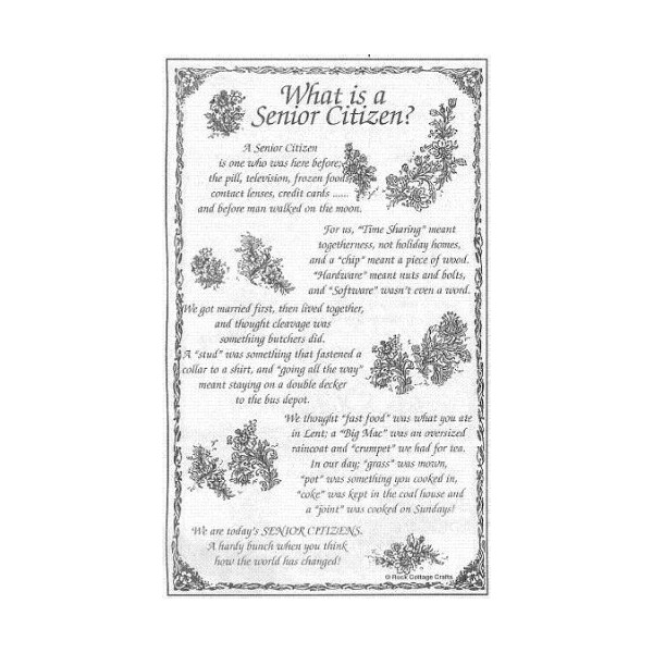- An amusing verse tea towel of the point-of-view of one of today's Senior Citizens looking at how times have changed over the years!