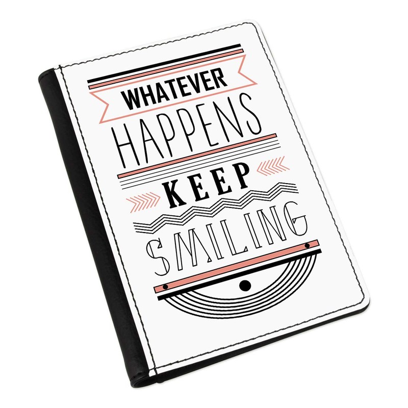 Whatever Happens Keep Smiling Quote Passport Holder Cover