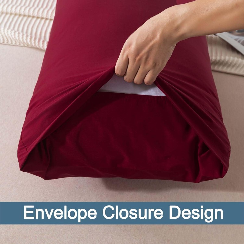 WhatsBedding Body Pillow Cover Cotton Fabric, Long Pillow Case Breathable & Skin-Friendly, Envelope Closure - Burgundy Red (21x54 inch)