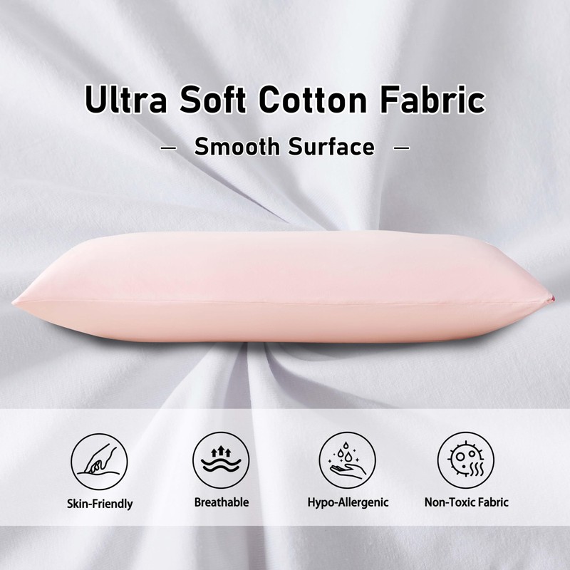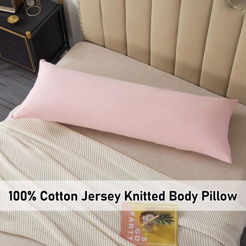 WhatsBedding Memory Foam Body Pillow with 100% Cotton Jersey Knitted Cover, Luxury Soft Large Long Pillow for Adults, Full Body Pillow with Removable Zippered Pillow Cover - Pink