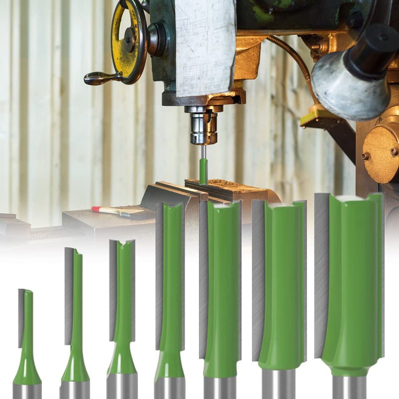 WHC 7 Piece Groove Cutter 6 mm Shank, Straight Cutter Set, Router Cutter Groove Cutter, Wood Cutter for Router, End Mill Wood, Wood Cutter Router Bit, 3-12 mm Wood Cutter Router Bit for Grooving Wood