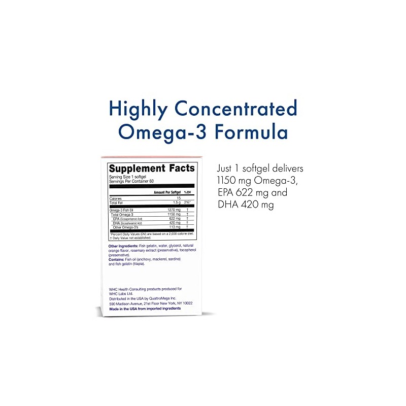 WHC UnoCardio X2 Triglyceride Omega-3 cidos grasos 1270 mg de pescado Suplemento de aceite (622 mg EPA 420 mg DHATotal 1150 mg de Omega 3 por...