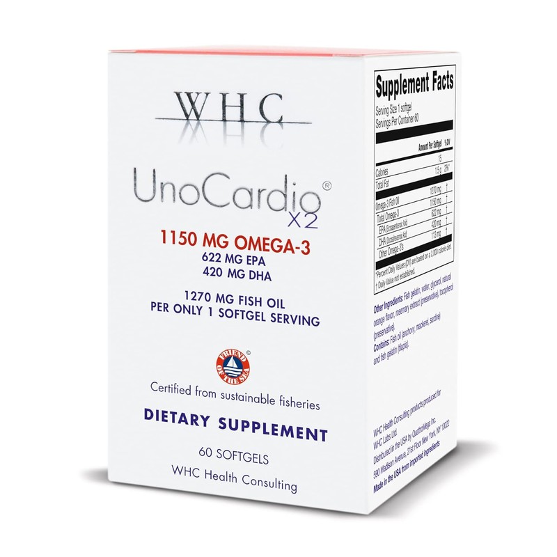 🌟 ⭐ WHC – UnoCardio X2 – Triglyceride Omega-3 ácidos grasos – 1270 mg de pescado Suplemento de aceite (622 mg EPA / 420 mg DHA/Total 1150 mg de Omega 3 por porción) ⭐ 🌟