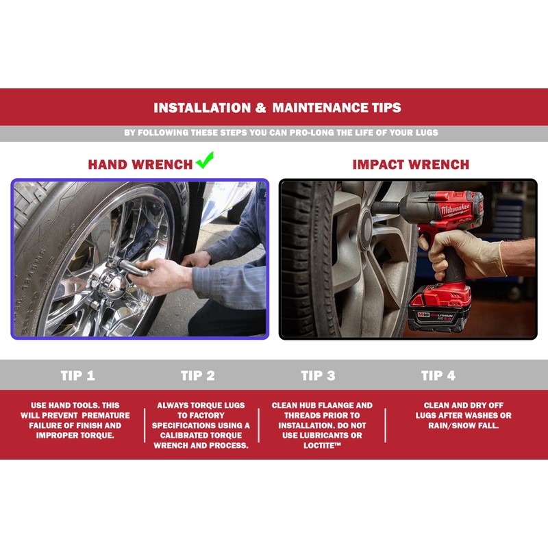 - Dual coated lug bolts have a long lasting, high luster finish.