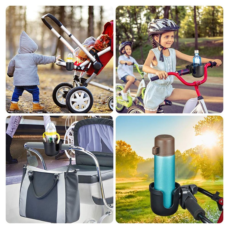 - Universal cup holder - Multifunctional cup holder could be used for Rollator, wheelchair, mobility scooter, armrest, , kid bicycle, airport chair, office chair , lawnmowers and stroller etc. To put different sizes bottles, like water bottle, coffee mug, baby bottle etc.