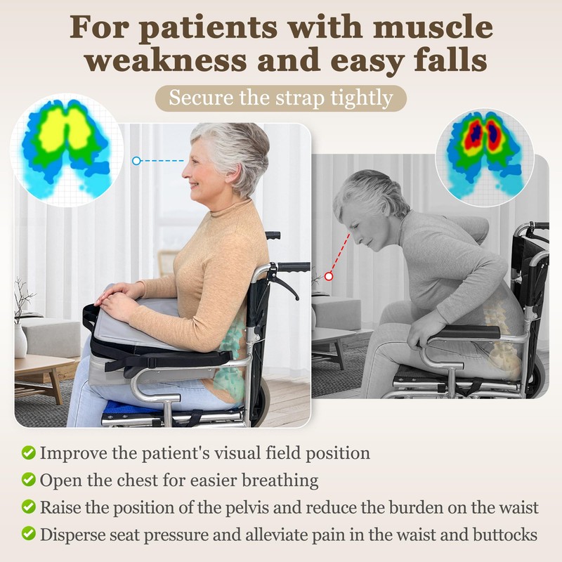 • 【More stable】: Multiple anti-slip points at the bottom of the pillow ensure a stable fixation during use and reduce the risk of sliding; equipped with two fixed on the armrests to prevent the patient from leaning forward. Please note! Be sure to tighten the fixing straps.