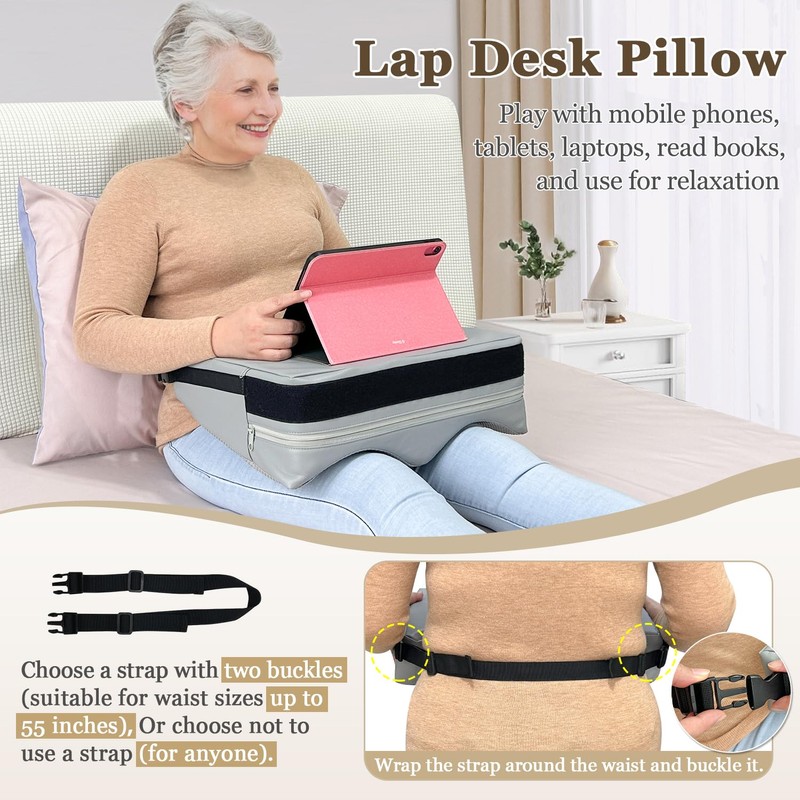 Wheelchair Lap Tray Cushion Wheelchair Lap Buddy for Seniors Removable Tray Table Dementia Patient Safety Positioning Prevents Forward Sliding Anti Fall Arm Support Lap Desk Reading Pillow