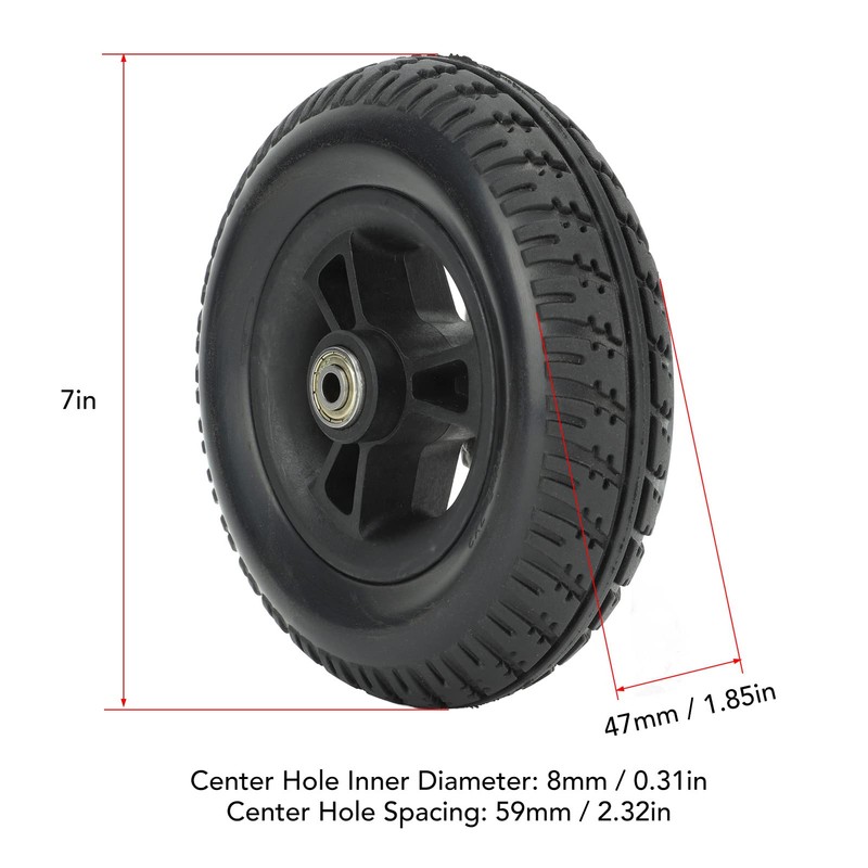 • Safe and explosion-proof: the wheel is stable and explosion-proof, without inflation, easy to use and change. Hole spacing in the middle: approx. 59 mm / 2.32 inches