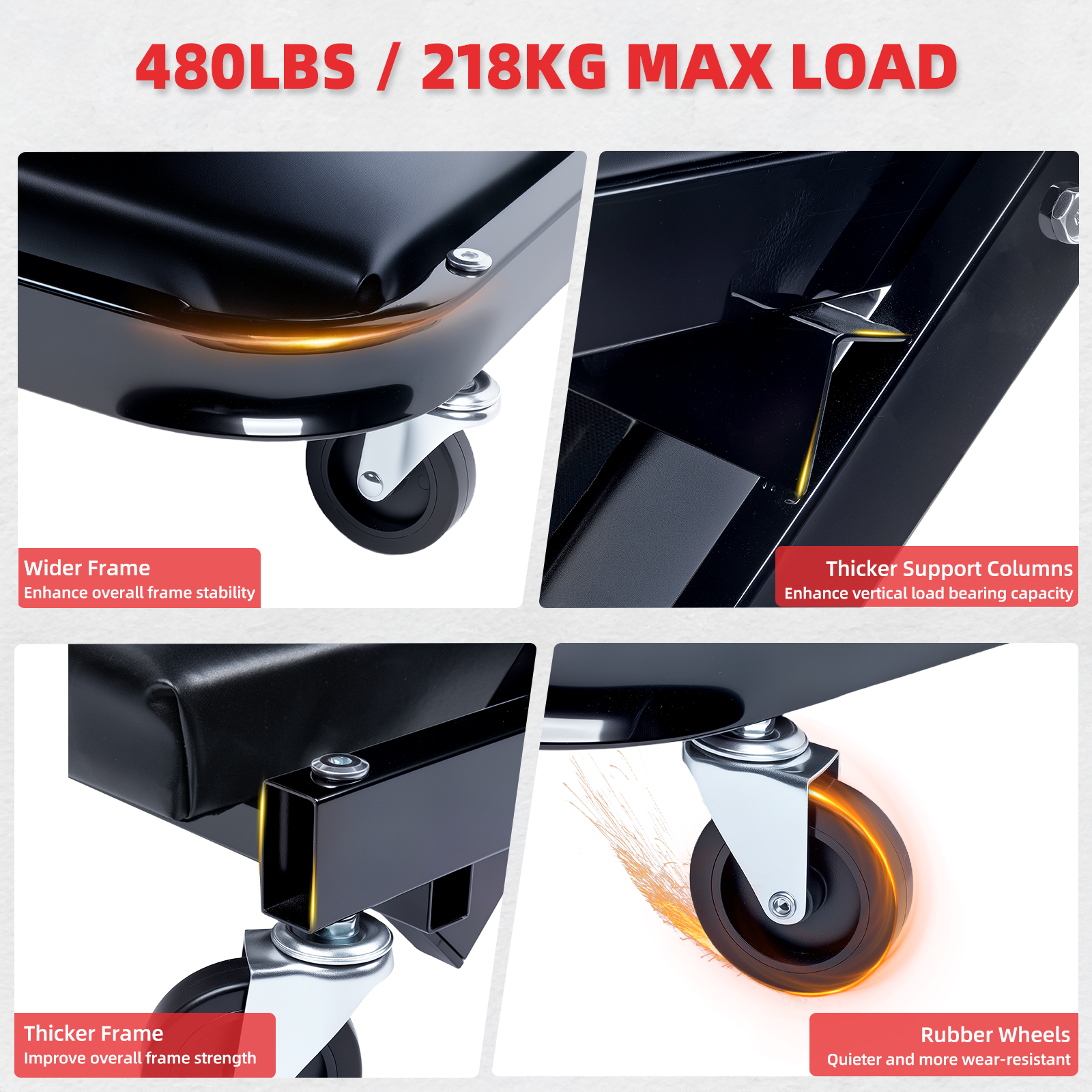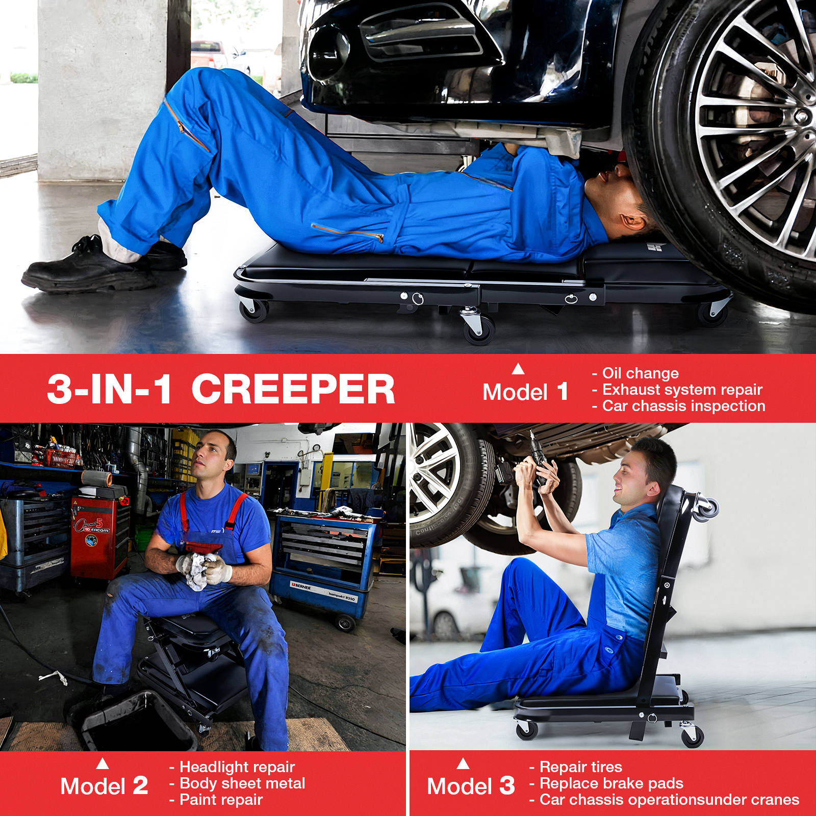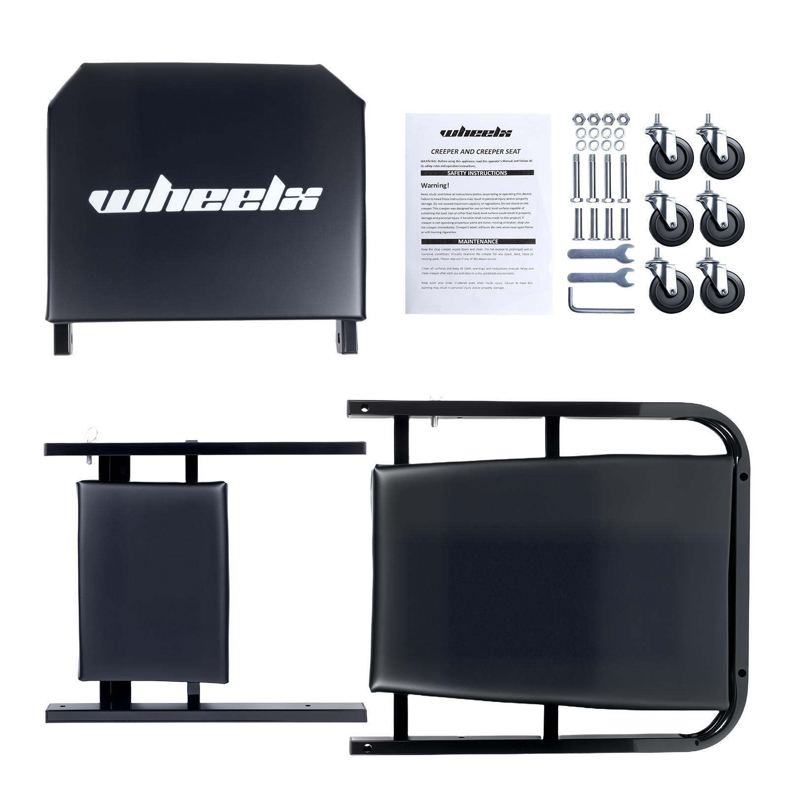 WheelX 36'' 340Lbs Mechanic Creeper w/Brake Folding Rolling Z Garage Stool Chair 3 in 1