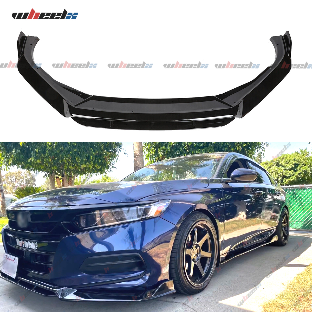 WheelX Gloss Black Front Bumper Lip Spoiler Splitter Protection For Honda Accord 18-20