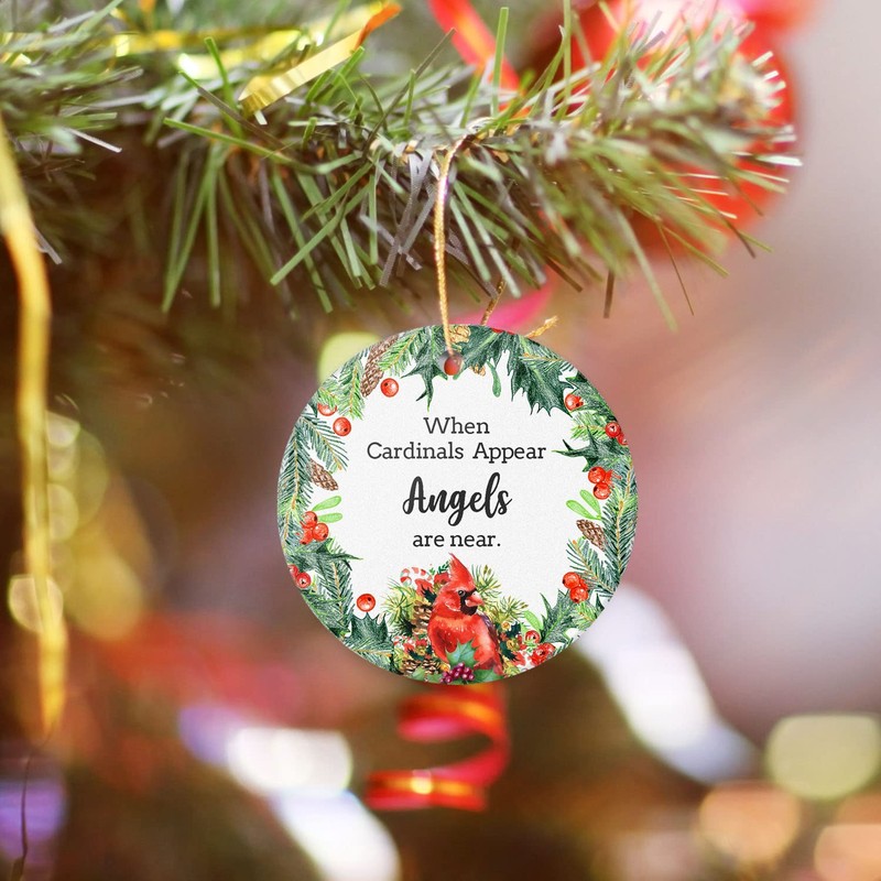 When Cardinals Appear Angels are Near Christmas Ornament 2023 Round Christmas Tree Ornaments Keepsake in Memory of Loved One Thoughtful Sympathy Gift for Loss of Loved One 3" with a Gift Box