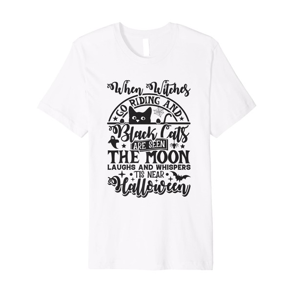 - When Witches Go Riding Black Cats Are Seen Moon Laughs Tis Near Halloween funny design for men, women, girl, young, dad, father, mother, uncle, son, daughter who like black cat, and witches. Great gift to wear on the Halloween time, party end of year,
