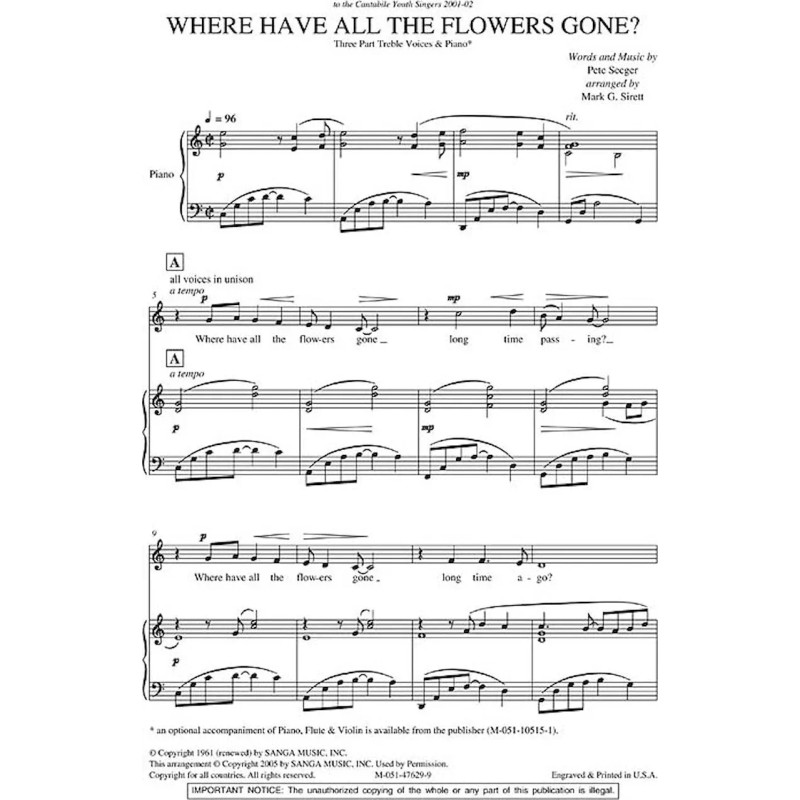 Pete Seeger's classic folksong is as moving and relevant today as when it was first written in 1955. This lyrical arrangement adds layers of voicing while retaining the song's original beauty and clarity. With piano and optional flute or violin.